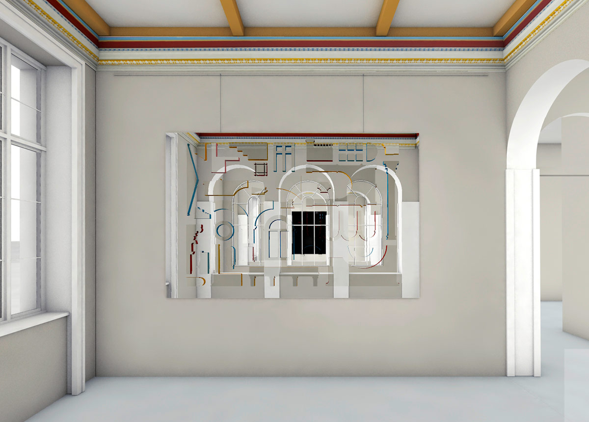 Die Idee für die künstlerische Ausgestaltung der Villa Liegnitz ist ein Wandrelief, eine Komposition aus fragmentarischen Formen der Architektur, die das Bauwerk zum Sprechen bringt.