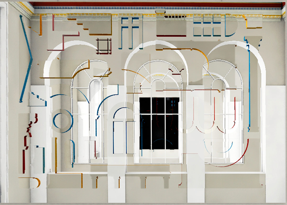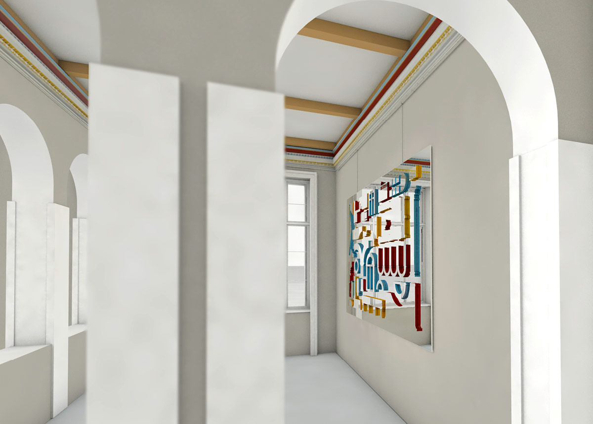 Inspiriert von der reichen italienischen Renaissance-Architektur werden Säulen, Arkaden, Pilaster und andere architektonische Merkmale zu abstrakten Fragmenten geformt. Diese Fragmente der Kunstinstallation stehen nicht nur für die strukturelle Schönheit des Bauwerks, sondern insbesondere als Metapher für die Brüche in der Geschichte der Villa Liegnitz, die von verschiedenen Epochen, Bewohnern und Funktionen geprägt ist. Die künstlerische Intervention bringt die wechselvolle Historie des Hauses in die Gegenwart, indem sie sie in einem zeitgenössischen Kontext interpretiert.
