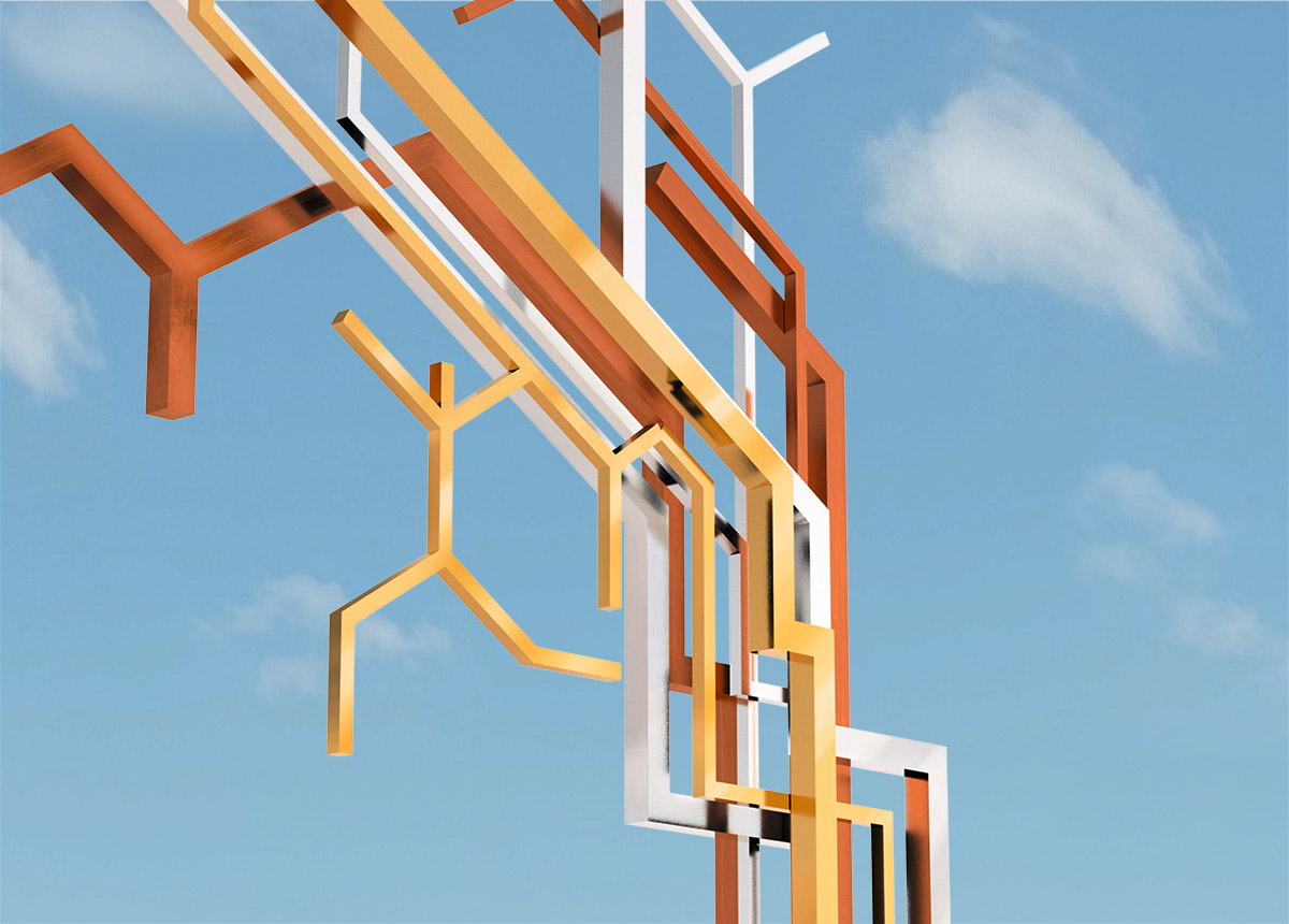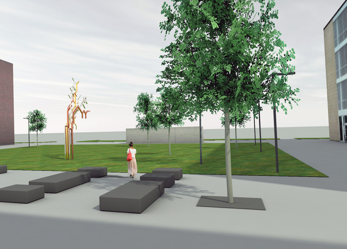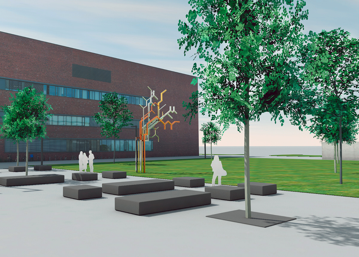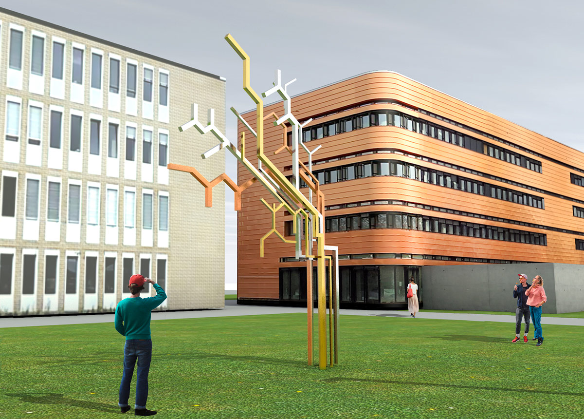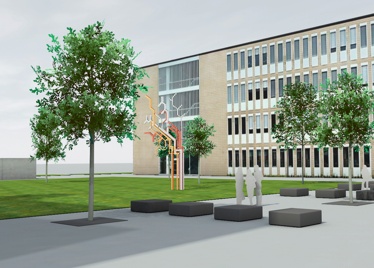 Die Idee für das Kunstkonzept ist ein skulpturales Objekt, das die Welt der Chemie, der Elektrotechnik und Informationstechnologie sichtbar und erlebbar macht. Das Kunstobjekt DIE STRUCTURA, das sich aus der abstrahierten Reduktion chemischer Formeln, Verbindungen und Schaltkreise bildet, lässt Formkomplexe mit einer vielschichtigen Symbolik entstehen. Das skulpturale Geschehen assoziiert Entwicklung, Entfaltung, Wachstum, Aufbau, Verbindung und Vernetzung. Mit der dynamischen Richtungstendenz und einem figuralen Element in der Gestaltung fließen weitere Inhalte wie Start, Weiterkommen, Fortschritt, Aufstreben mit ein.