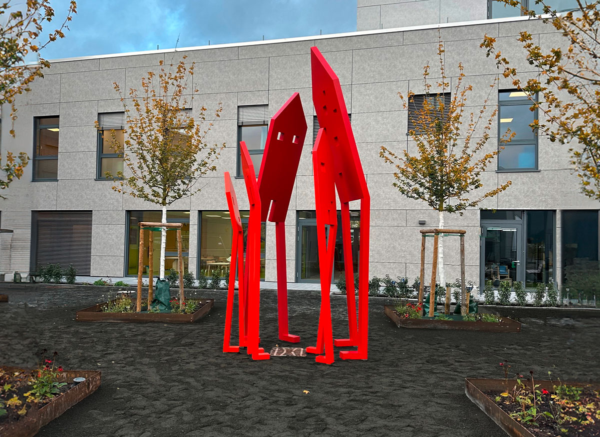 Das WILávie mit Kindertagesstätte, Mehrgenerationenhaus und Haus der Jugend ist ein Ort, der Menschen zusammenbringt zu gemeinsamem Tun. Da liegt es nahe, Kunstwerke zu schaffen, die sich den Menschen beigesellen.