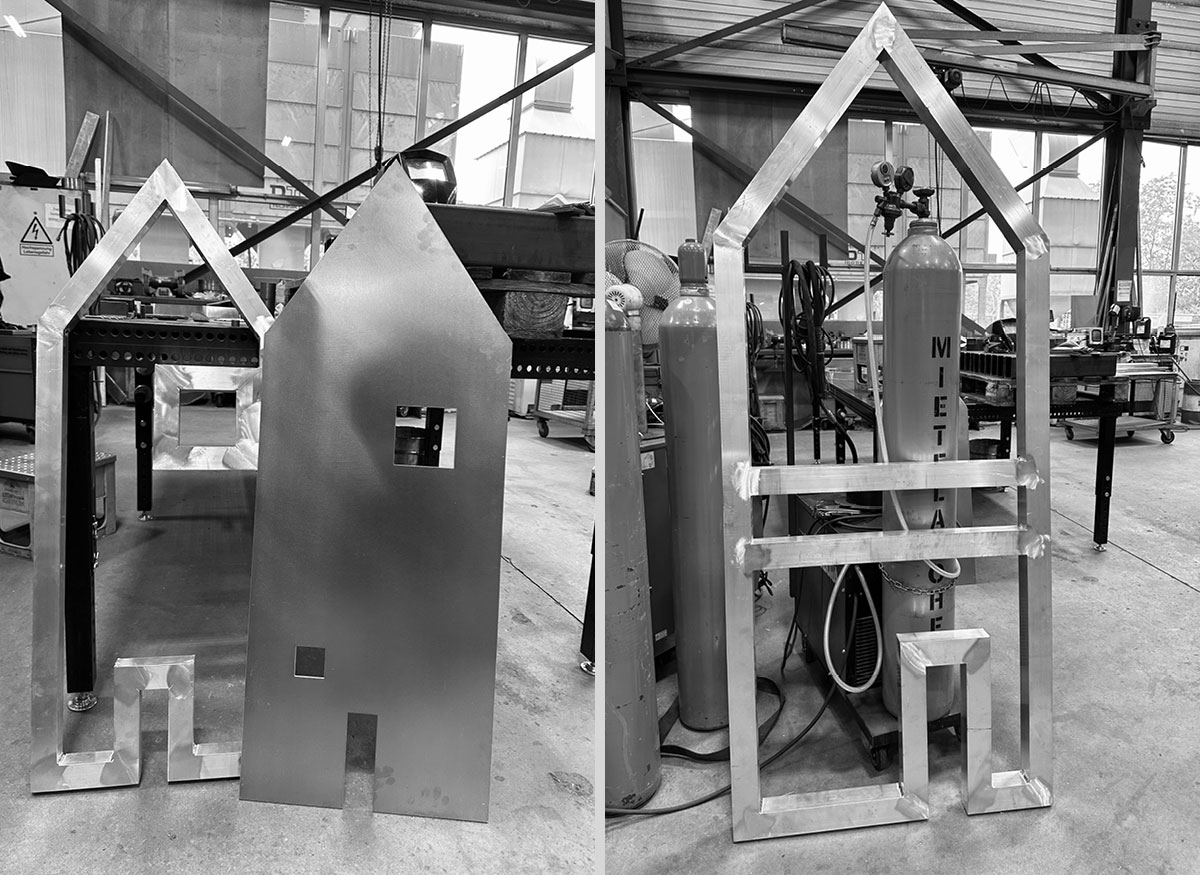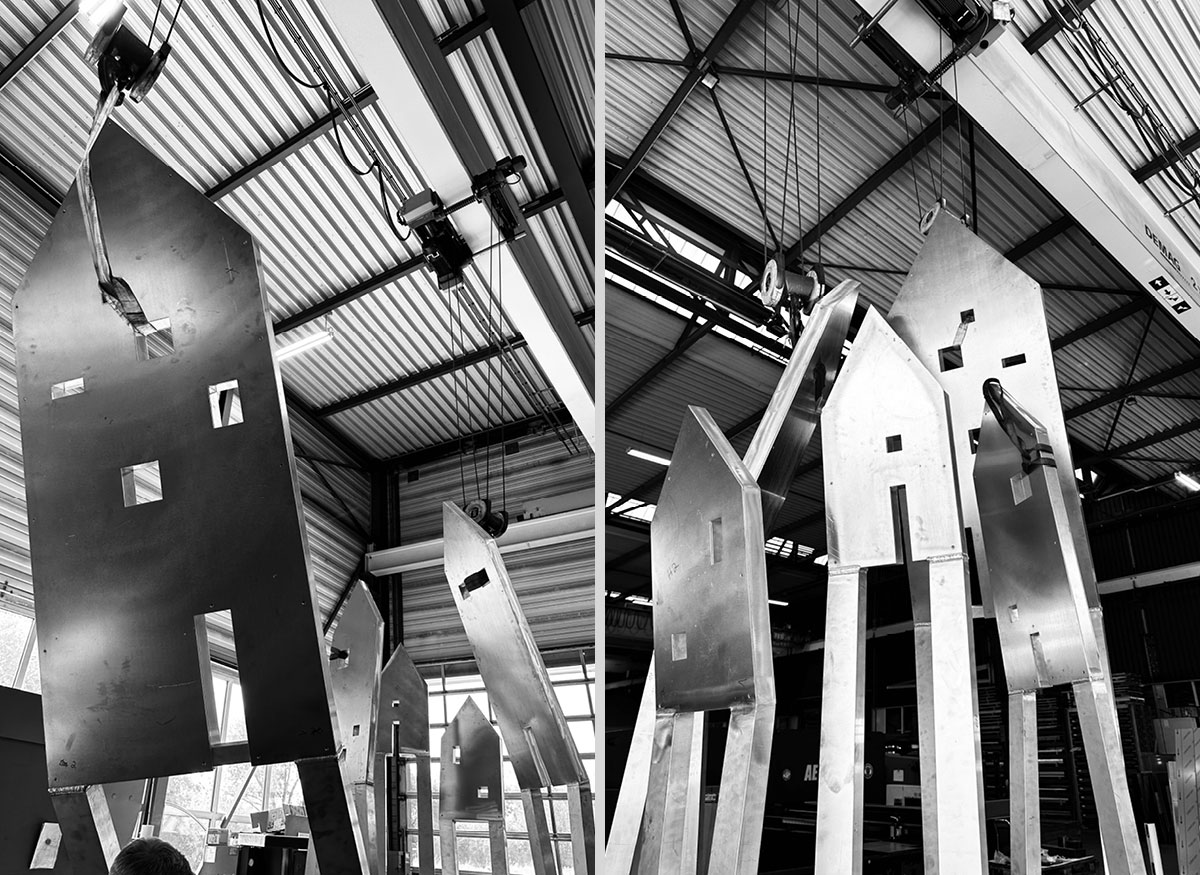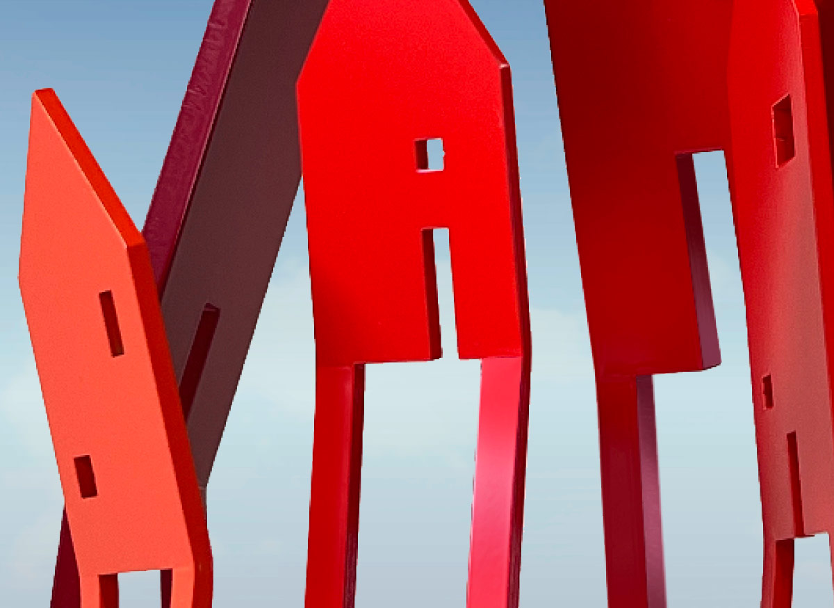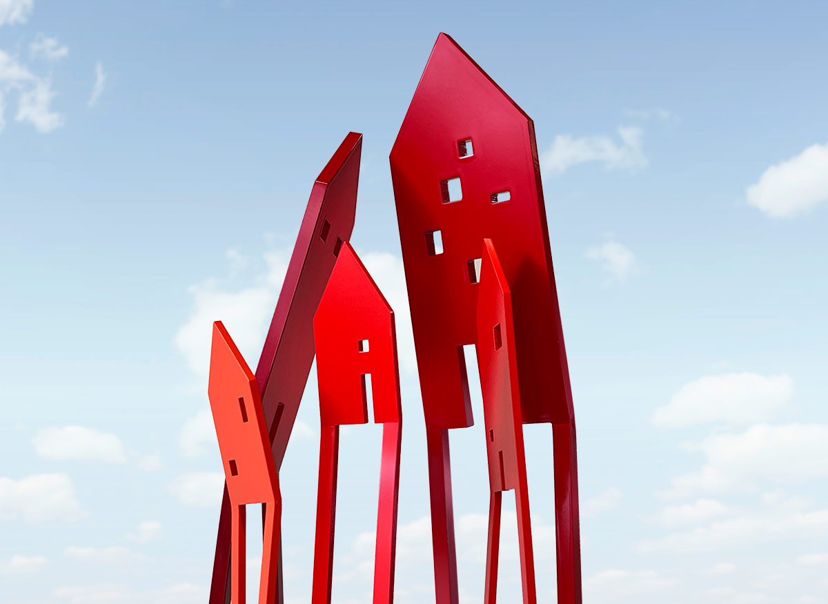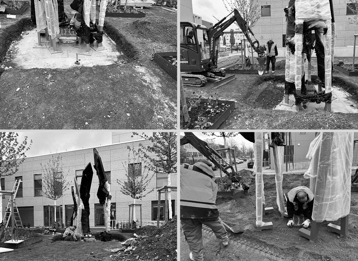 In einer abstrakten, minimalistischen Formensprache vermitteln die Kunstobjekte ein Bild der Gemeinschaft und Zusammengehörigkeit – ein Kunstwerk mit einladendem Charakter, das Zugewandtheit vermittelt und ein Wir-Gefühl erzeugt.