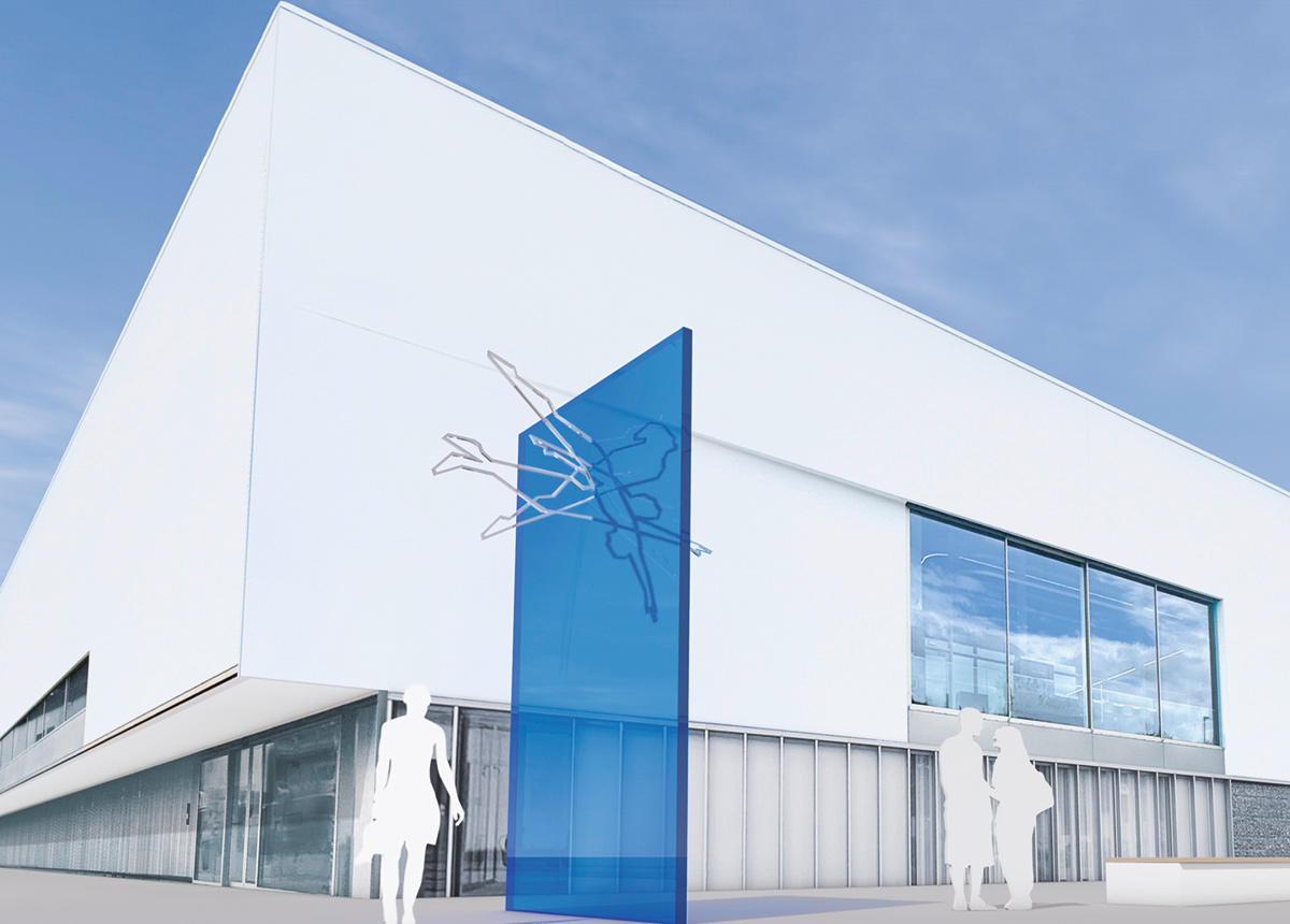 Das Kunstobjekt mit dem Titel „Immersion“ ist eine künstlerische Reflexion über die Ästhetik und Dynamik des Schwimmens. Die Idee für die Kunstinstallation ist eine „Wasserwand“. Ein großformatiger, senkrecht stehender transluzenter Acrylblock in Kristallblau symbolisiert das Wasser.