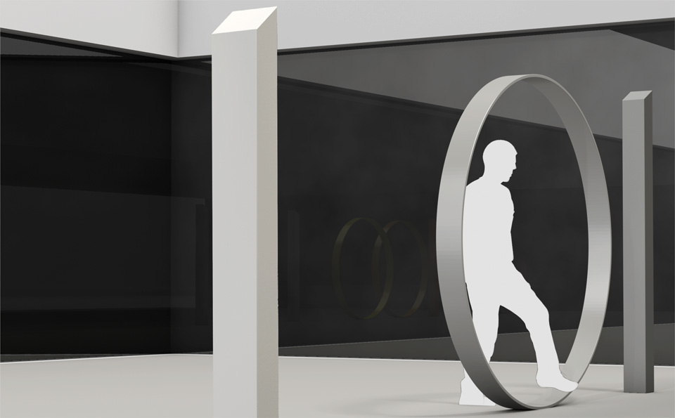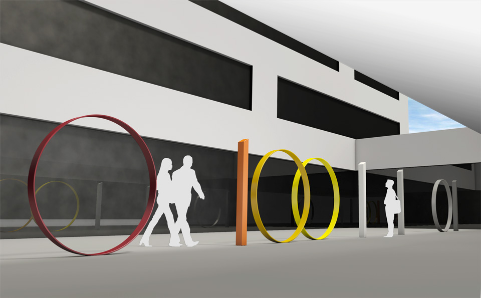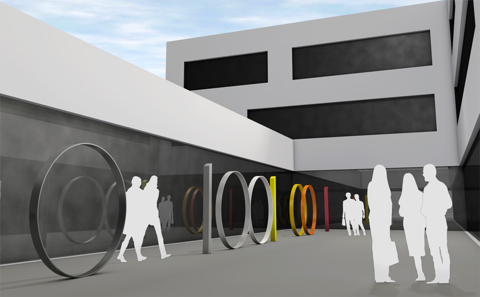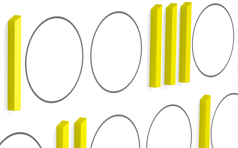 Ein Minimum an Zahlen wird aufgeladen mit einem Maximum an Sinn. Der Binär-Code als „Sinn-Code“ ist das künstlerische Motiv für die verschiedenen Standorte im Neubau der Fakultät für Informatik und Mathematik. Das ästhetische Programm geht den Binärzahlen auf den Grund und stellt den Gegensatz dar, der diesen Zeichen immanent ist. Der abstrakte Gegensatz zwischen Null und Eins, zwischen Pause und Senden wird zum sinnfälligen Gegensatz zwischen Kreis und Gerade, zwischen leerer Kontur und gefülltem Volumen, zwischen rotierender Bewegung und statischer Verankerung.