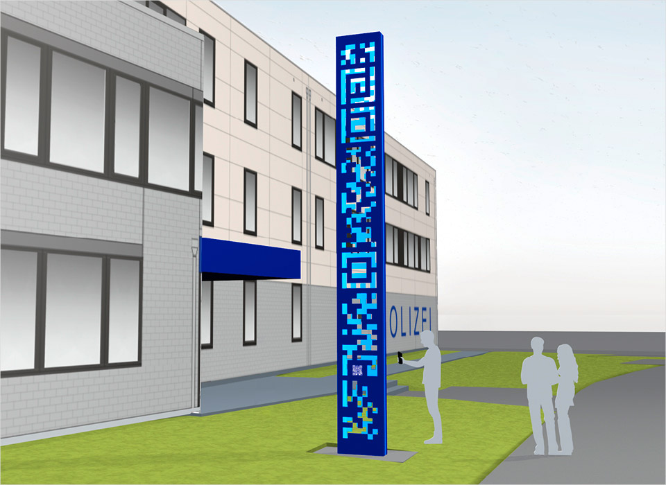 Die Idee für das Kunstkonzept ist der digitale Code für SICHERHEIT. Sicherheit und Schutz für unser Gemeinwesen, eine zentrale Funktion der Polizei als Sicherheitsorgan des Staates.